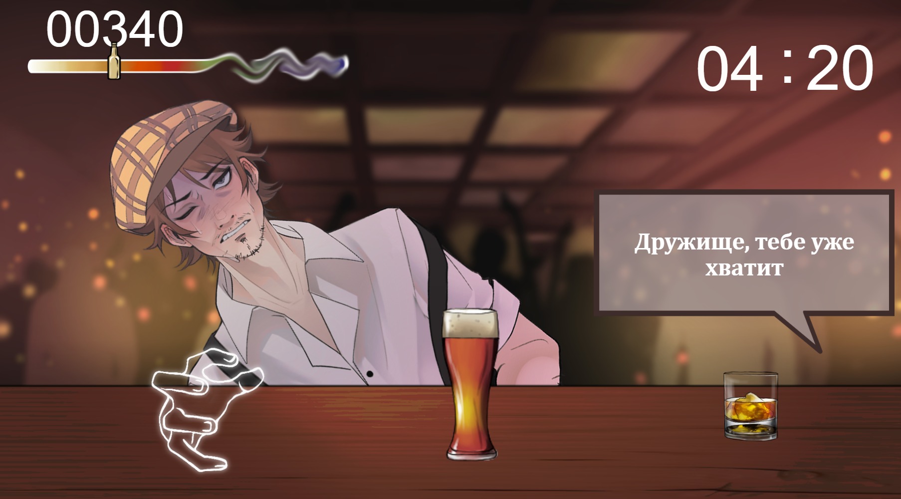 Бар «На грани» – место, где граница между контролем и хаосом стирается с каждой выпитой рюмкой. Здесь смешиваются юмор, азарт и умение игрока удерживать персонажа в прямом смысле слова "на грани".
